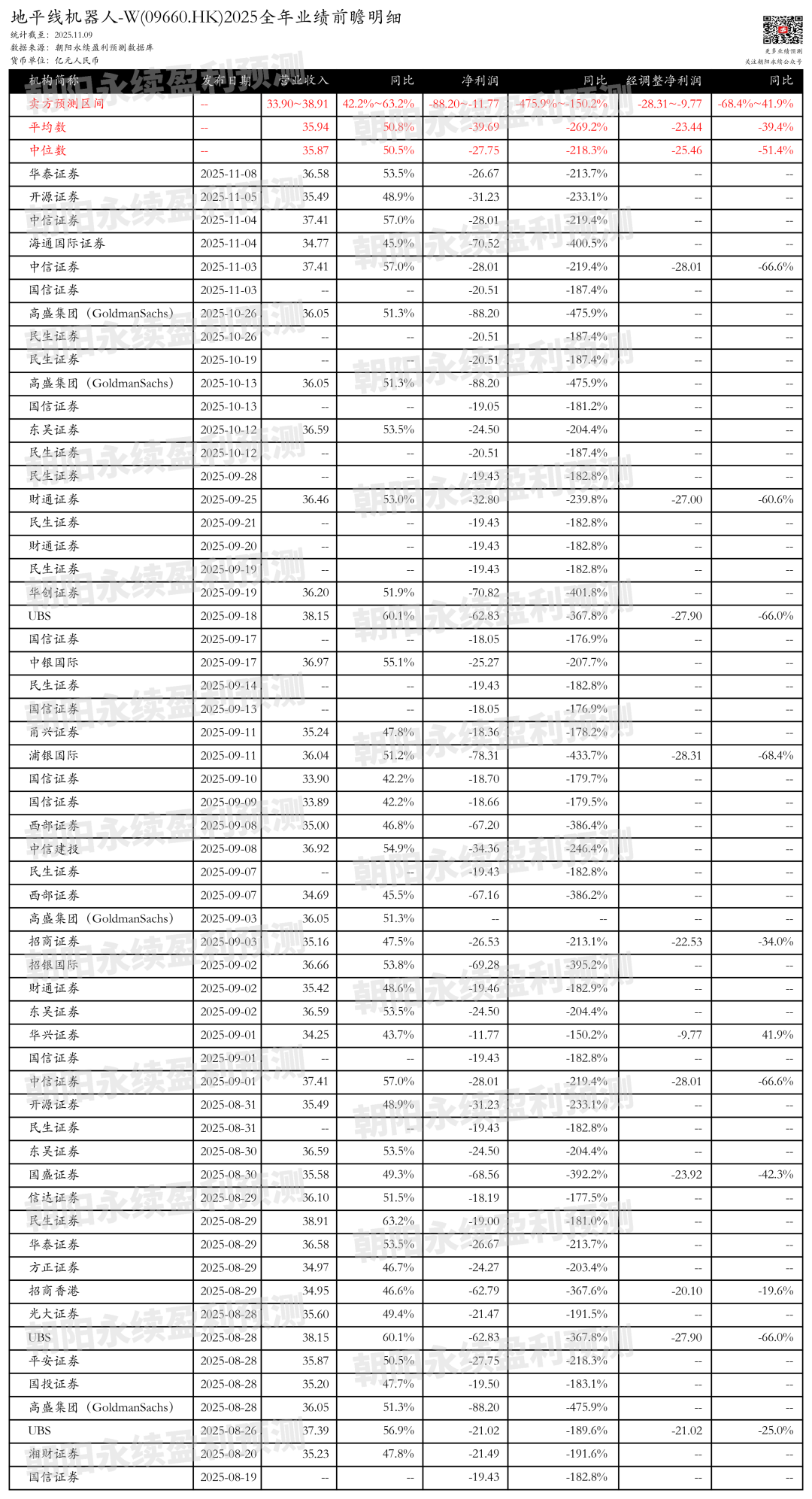 截至2025年11月09日,根据朝阳永续季度业绩前瞻数据: